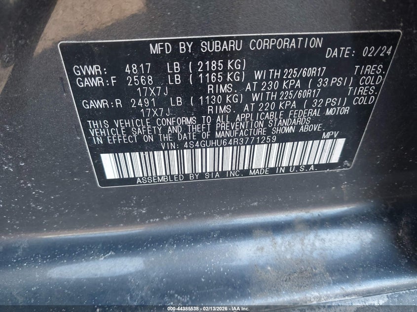 • 4S4GUHU64R3771259