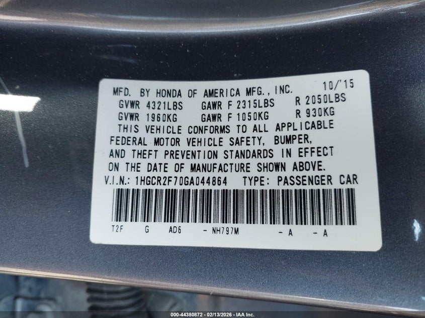 • 1HGCR2F70GA044864
