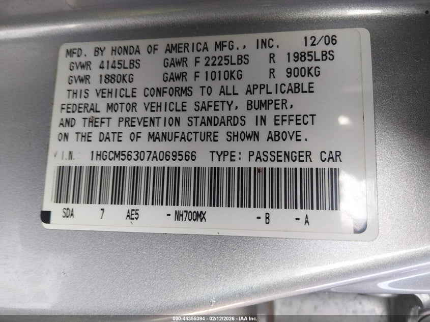 • 1HGCM56307A069566