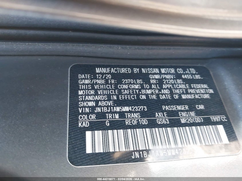 • JN1BJ1AW5MW423273