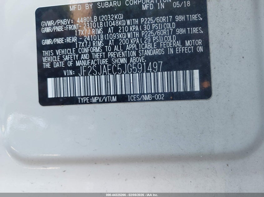 • JF2SJAEC5JG591497