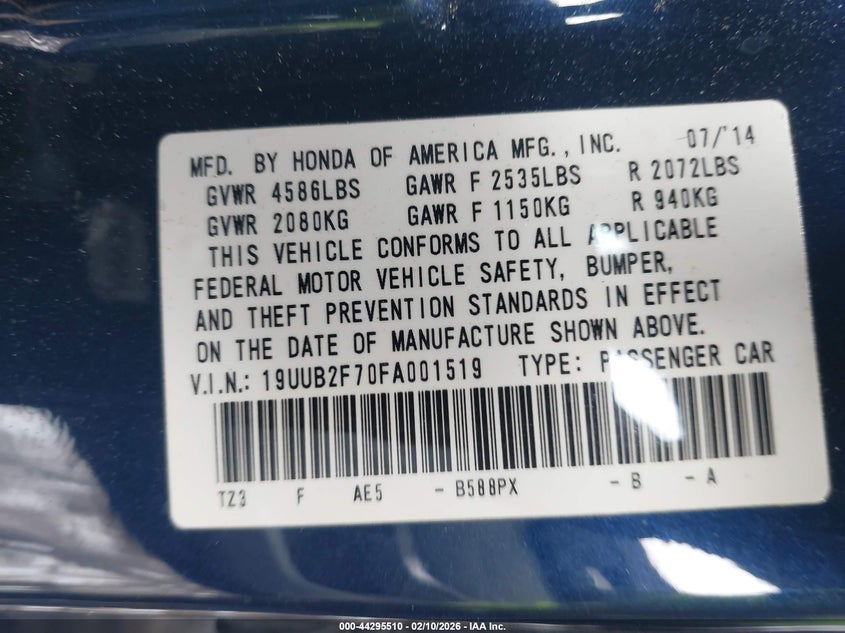 • 19UUB2F70FA001519