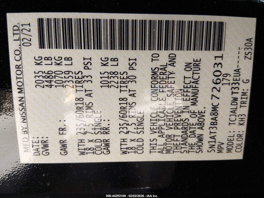 • 5N1AT3BA8MC726031