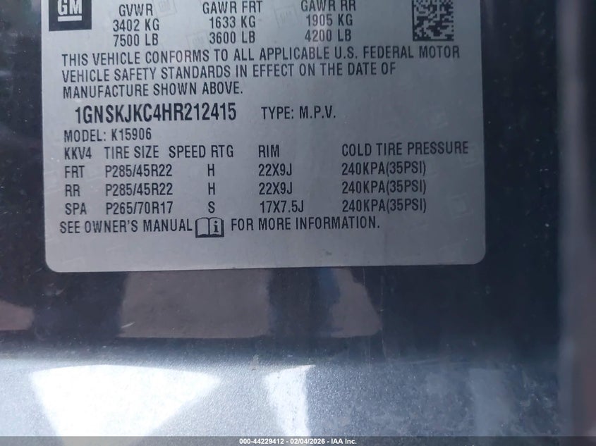 • 1GNSKJKC4HR212415