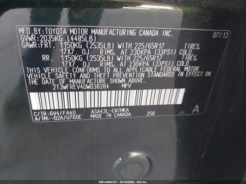 • 2T3WFREV4DW038284