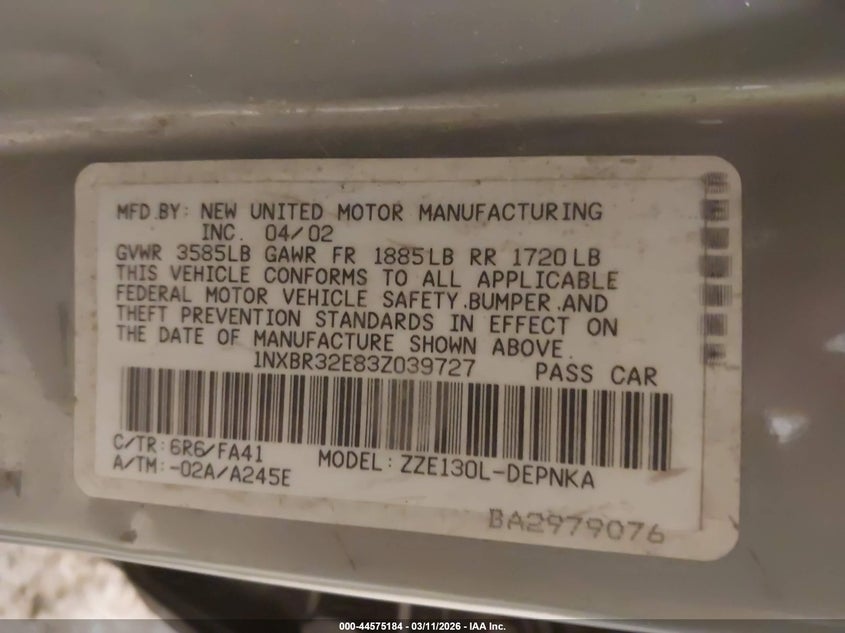 • 1NXBR32E83Z039727