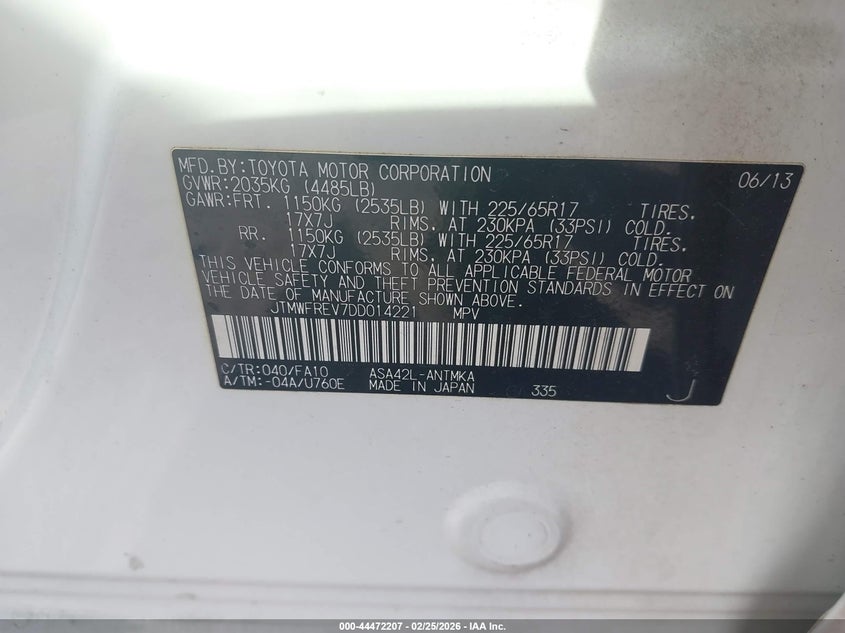 • JTMWFREV7DD014221
