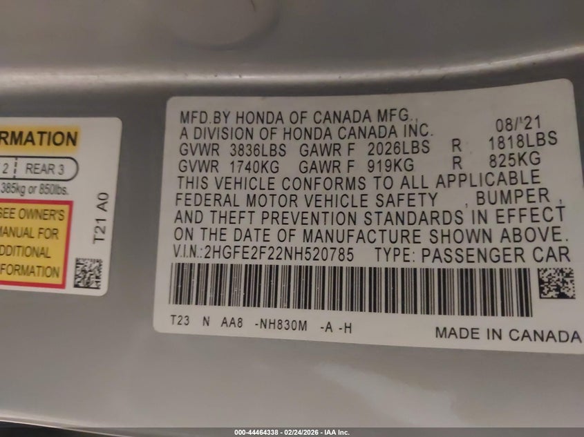 • 2HGFE2F22NH520785