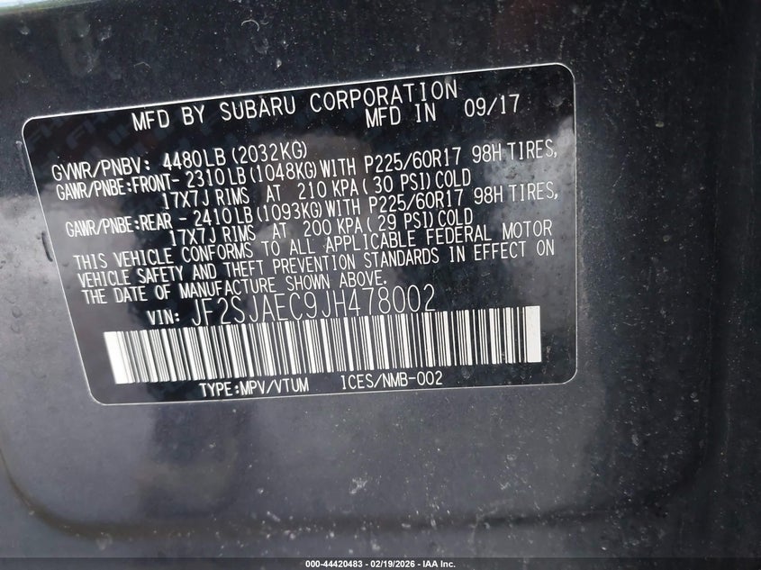 • JF2SJAEC9JH478002