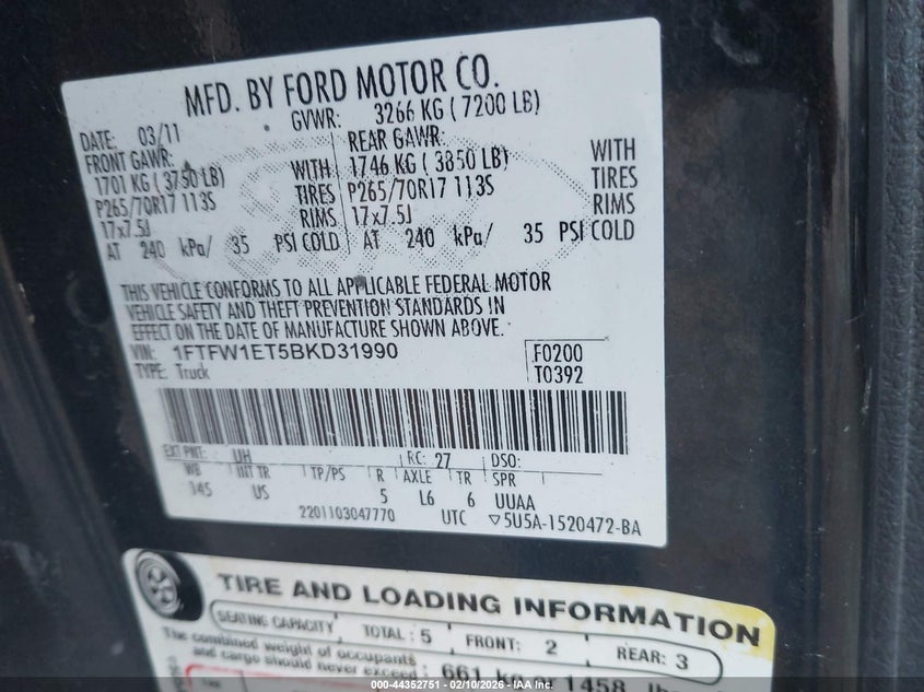 • 1FTFW1ET5BKD31990