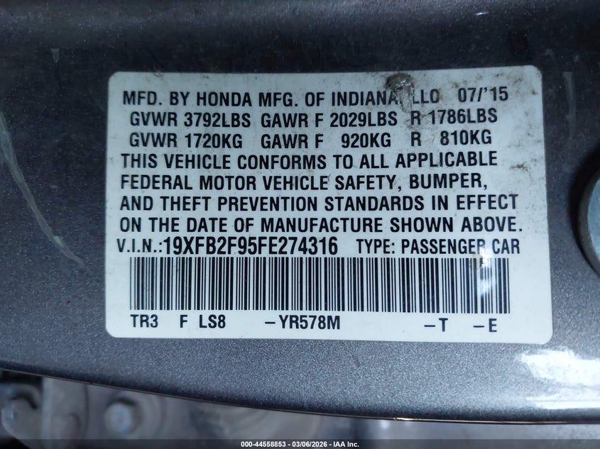 2015 HONDA CIVIC EX-L for Sale in Sacramento West, None