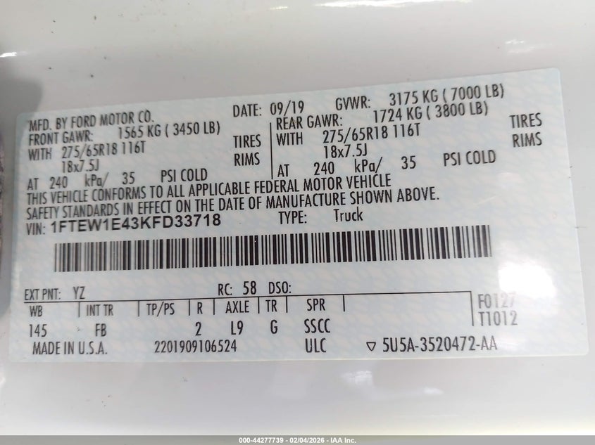 • 1FTEW1E43KFD33718