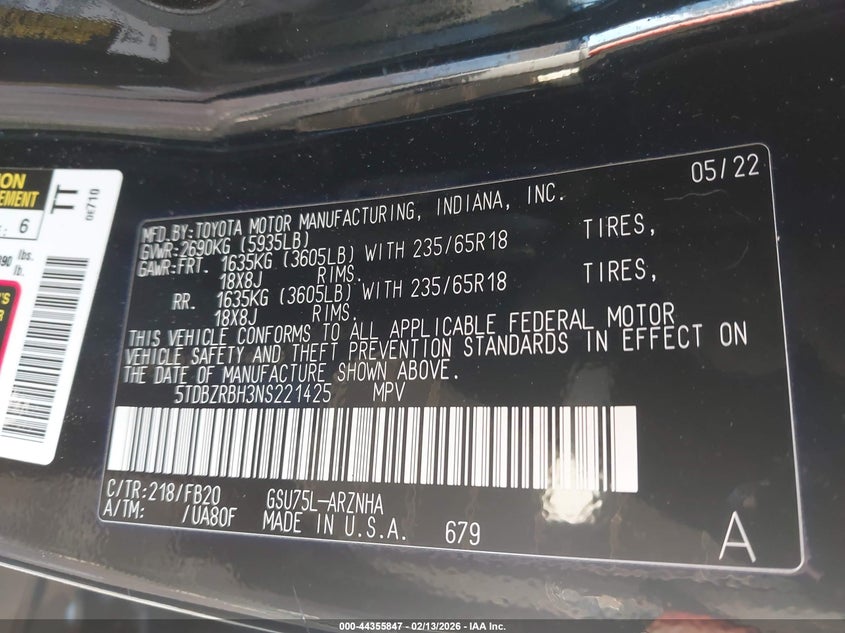 • 5TDBZRBH3NS221425