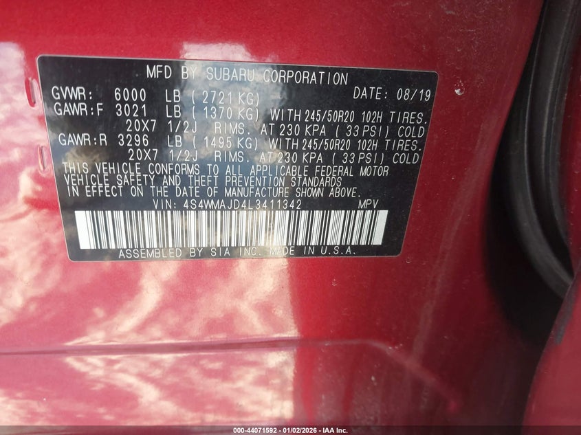 2020 SUBARU ASCENT LIMITED for Sale in Aliquippa, PA