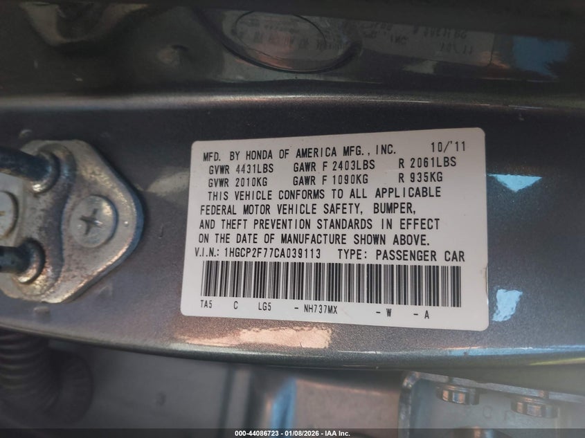 • 1HGCP2F77CA039113