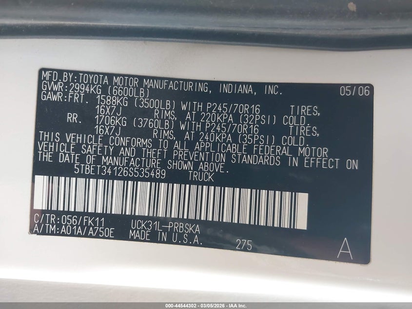 • 5TBET34126S535489