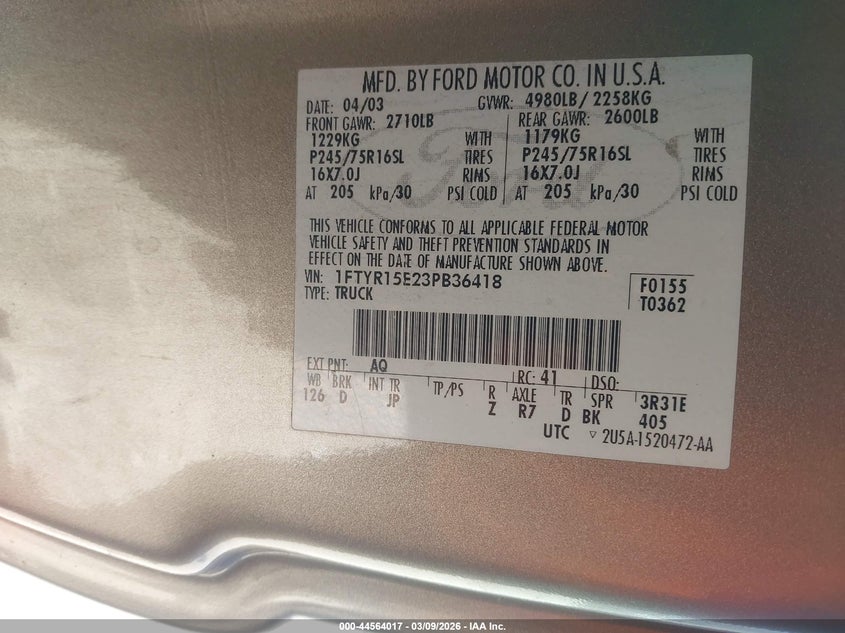 • 1FTYR15E23PB36418