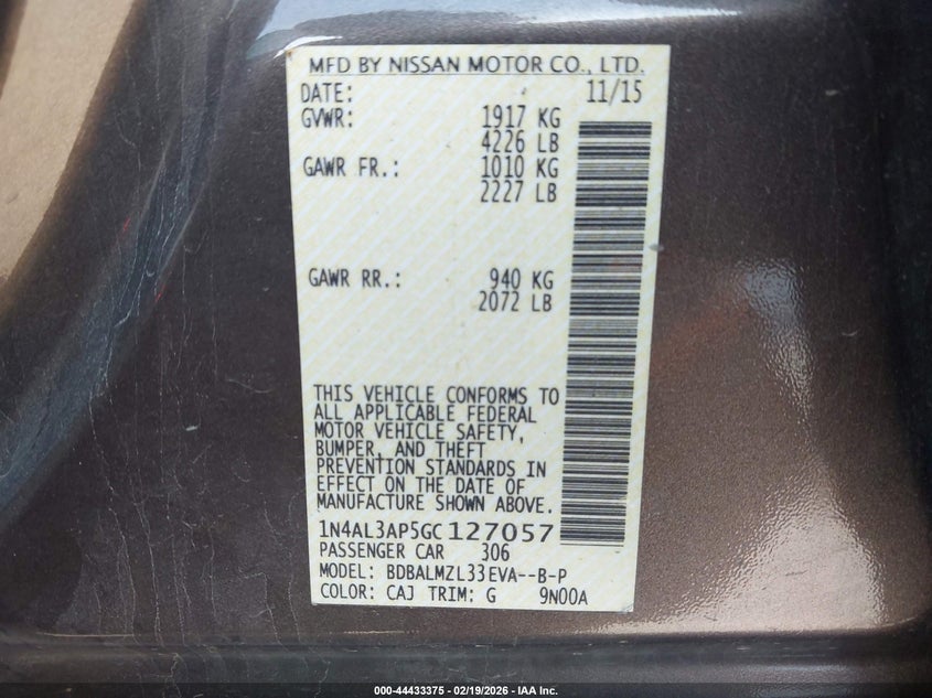 • 1N4AL3AP5GC127057