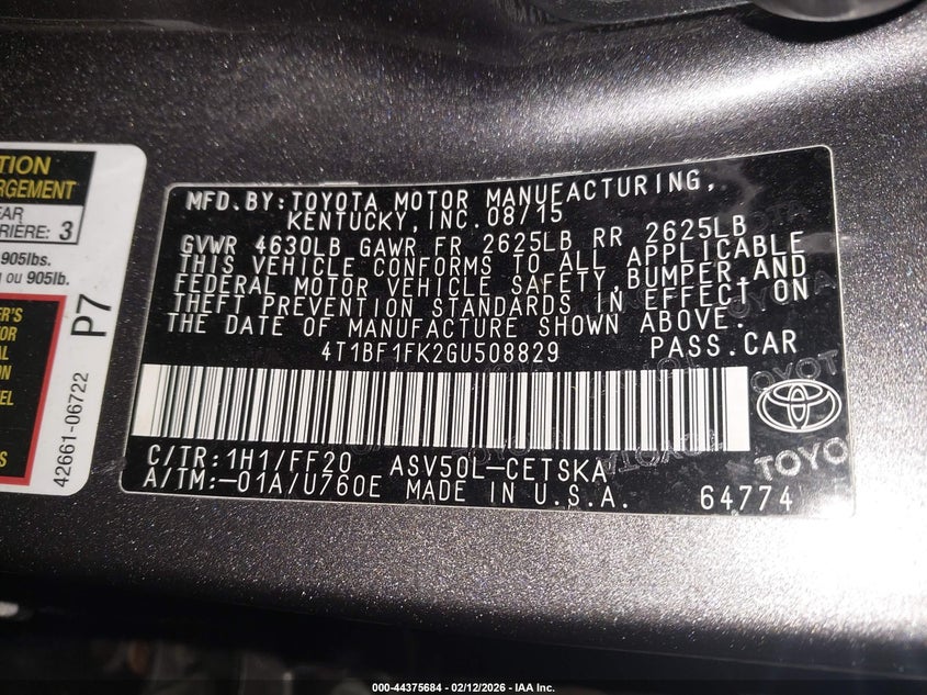 • 4T1BF1FK2GU508829