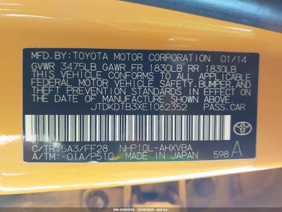 • JTDKDTB3XE1062352