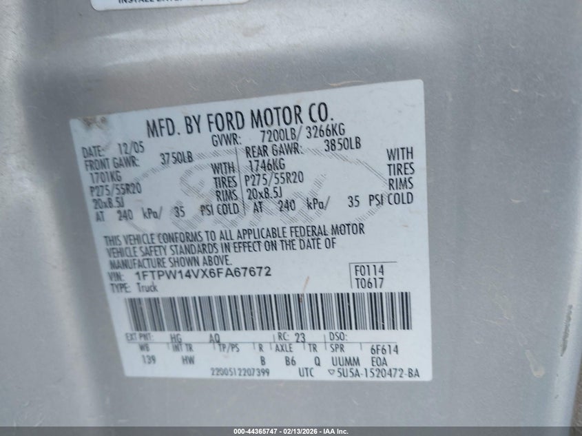 • 1FTPW14VX6FA67672