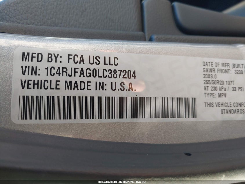 • 1C4RJFAG0LC387204