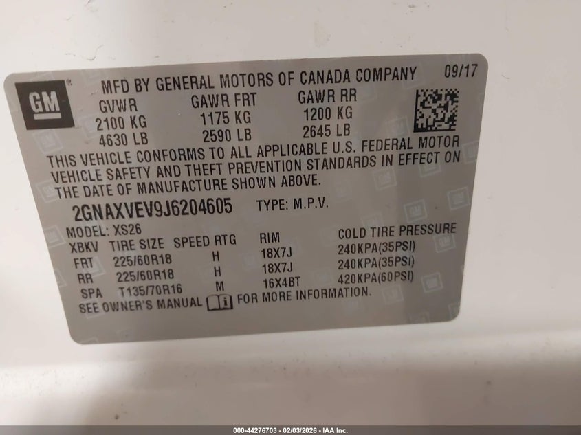 • 2GNAXVEV9J6204605
