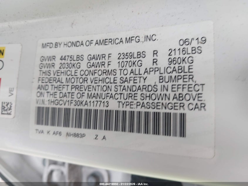 2019 HONDA ACCORD SPORT for Sale in Livingston, LA