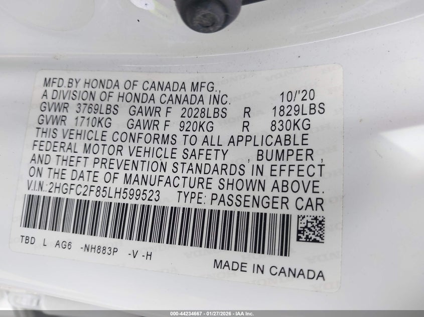• 2HGFC2F85LH599523