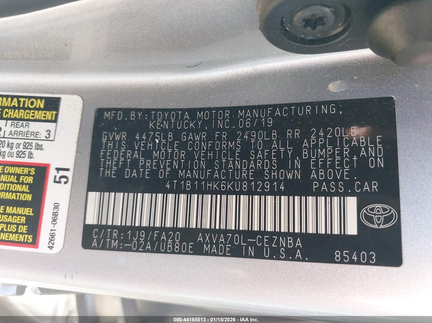 • 4T1B11HK6KU812914