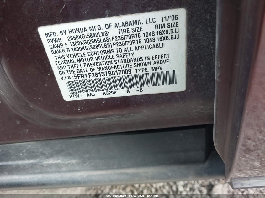 • 5FNYF28157B017009
