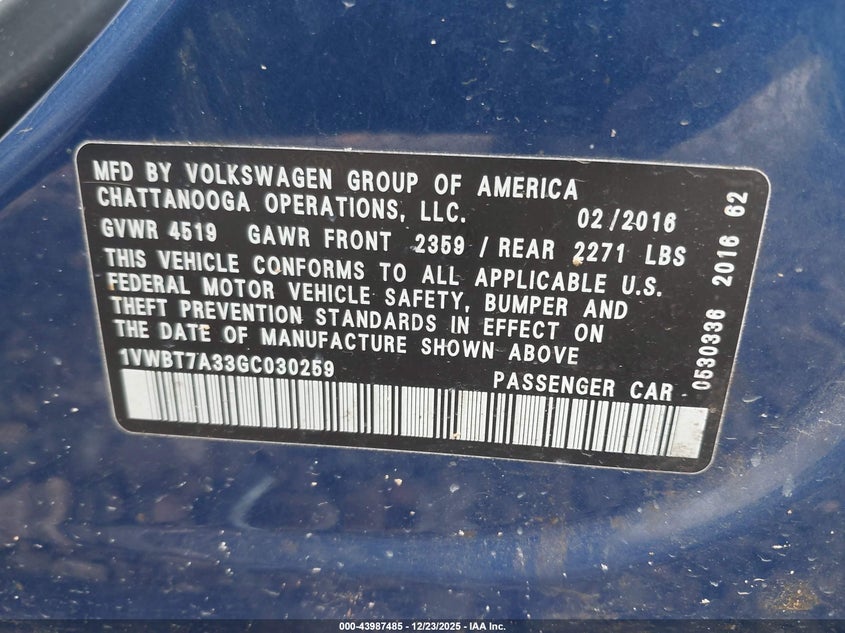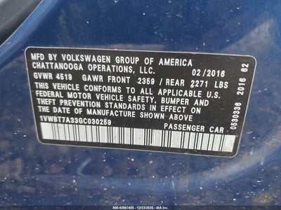 2016 VOLKSWAGEN PASSAT 1.8T SE for Sale in Headland, AL