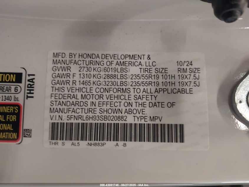 • 5FNRL6H93SB020882