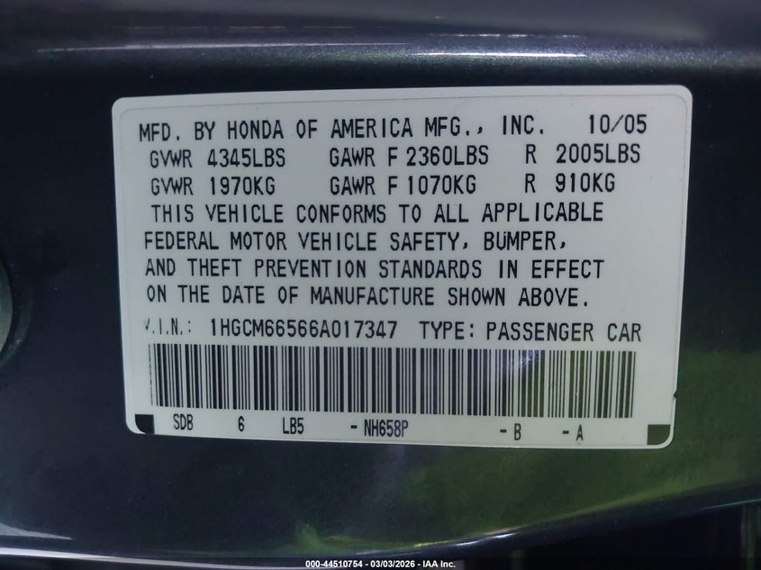 • 1HGCM66566A017347