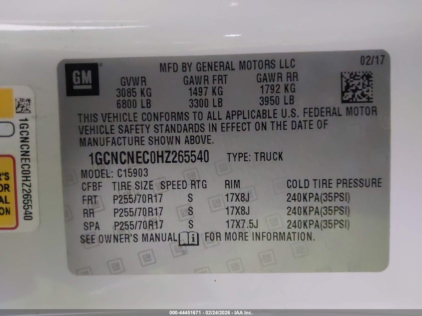 • 1GCNCNEC0HZ265540