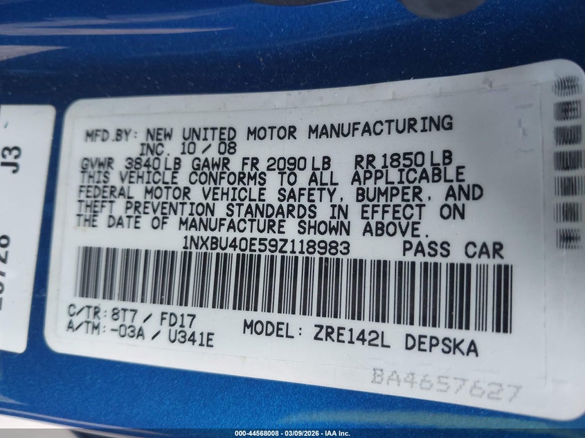 • 1NXBU40E59Z118983