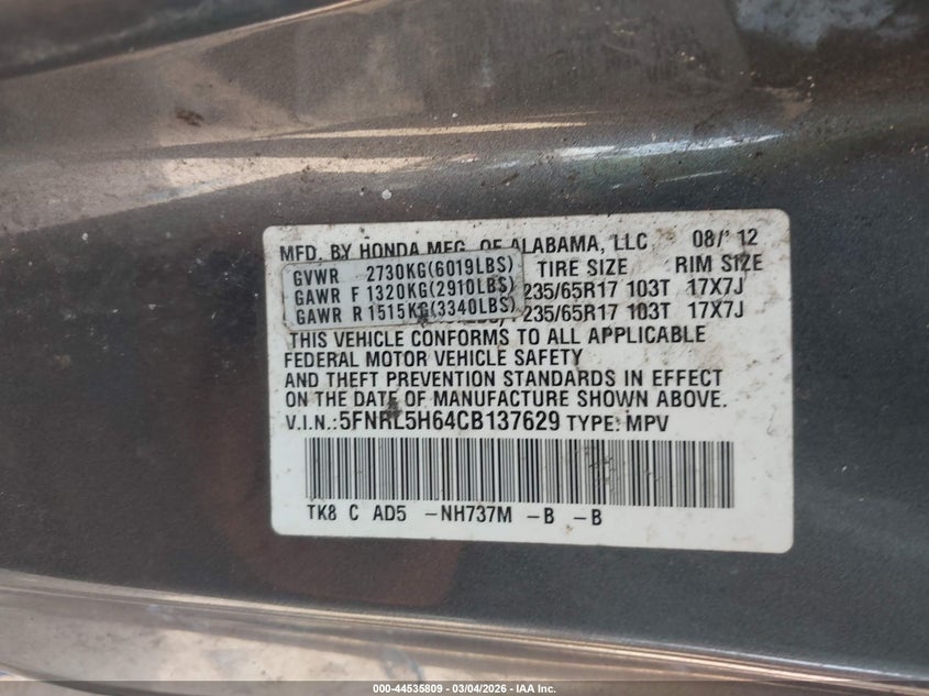 • 5FNRL5H64CB137629