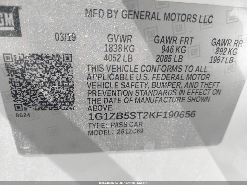 • 1G1ZB5ST2KF190656