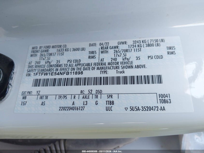 • 1FTFW1E54NFB11898