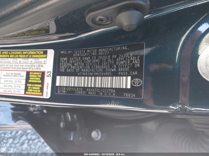 • 4T1K61AK1MU594895