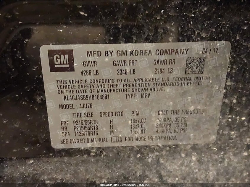 • KL4CJASB9HB184881