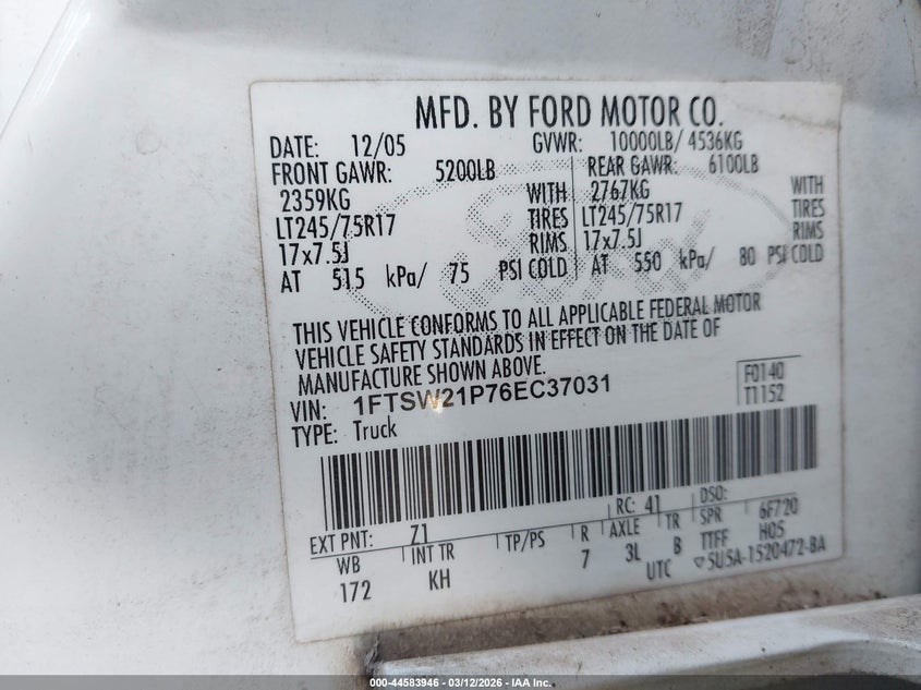 • 1FTSW21P76EC37031
