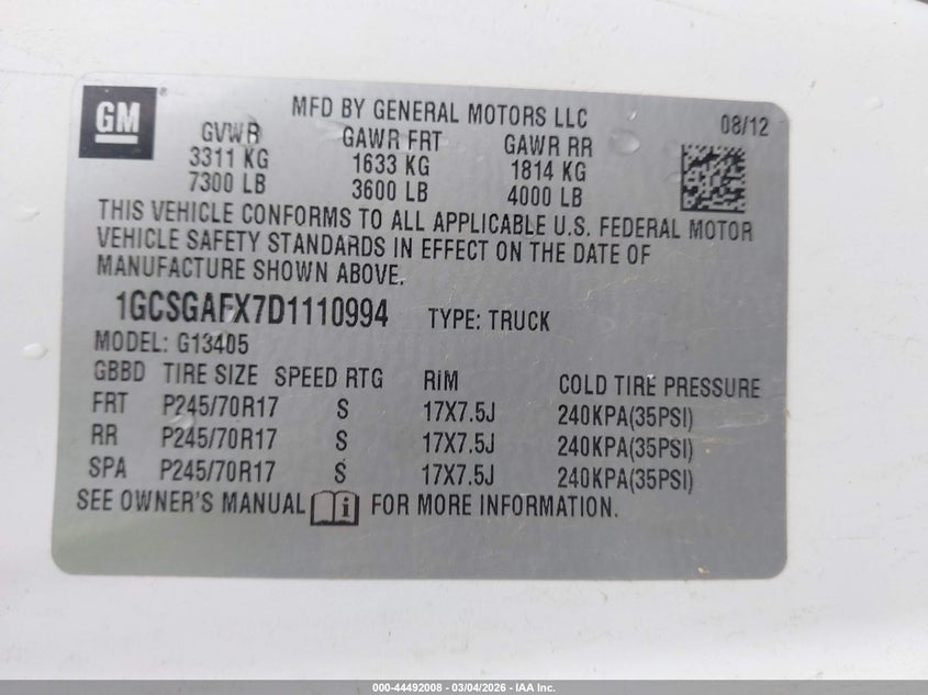 • 1GCSGAFX7D1110994