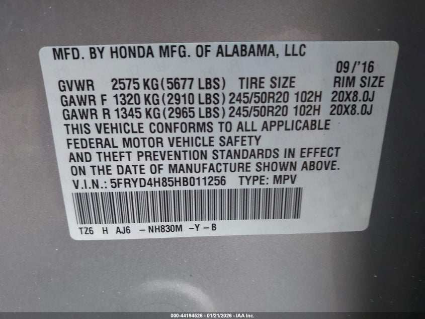 • 5FRYD4H85HB011256