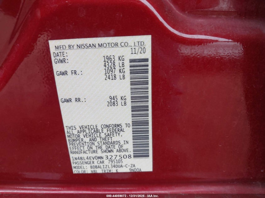 • 1N4BL4EV0MN327508