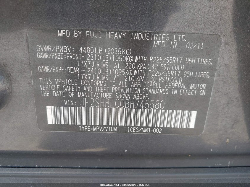 • JF2SHBEC0BH745580