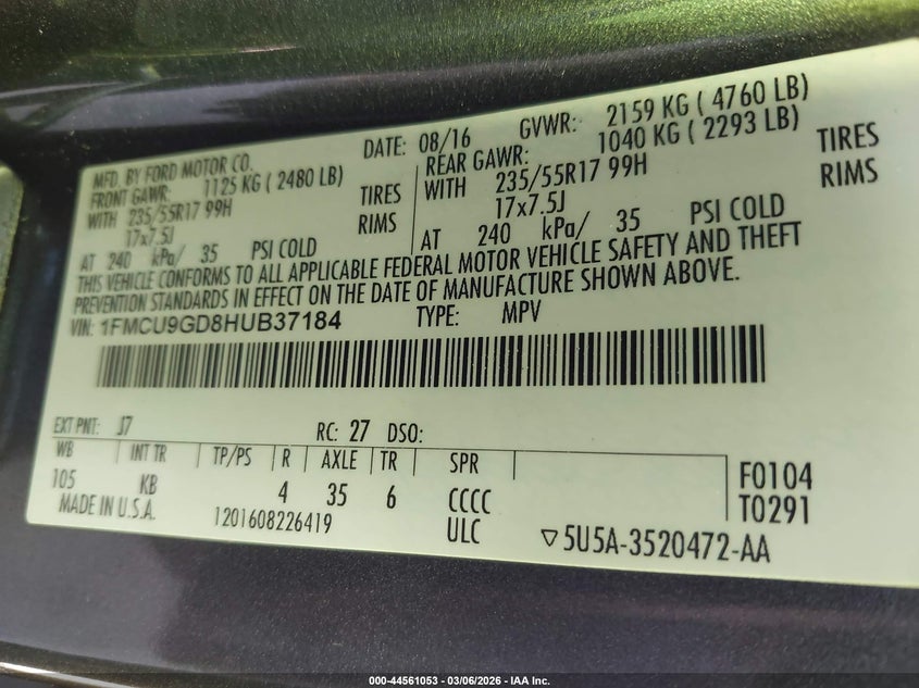 • 1FMCU9GD8HUB37184