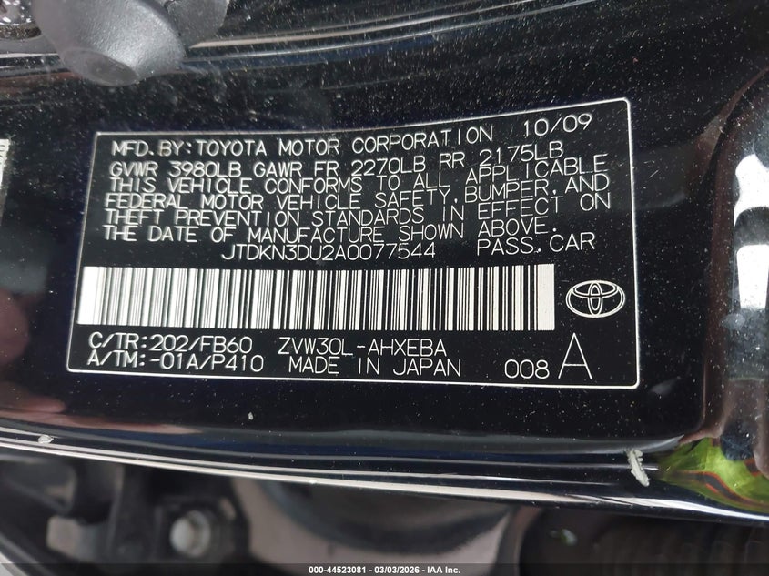 • JTDKN3DU2A0077544