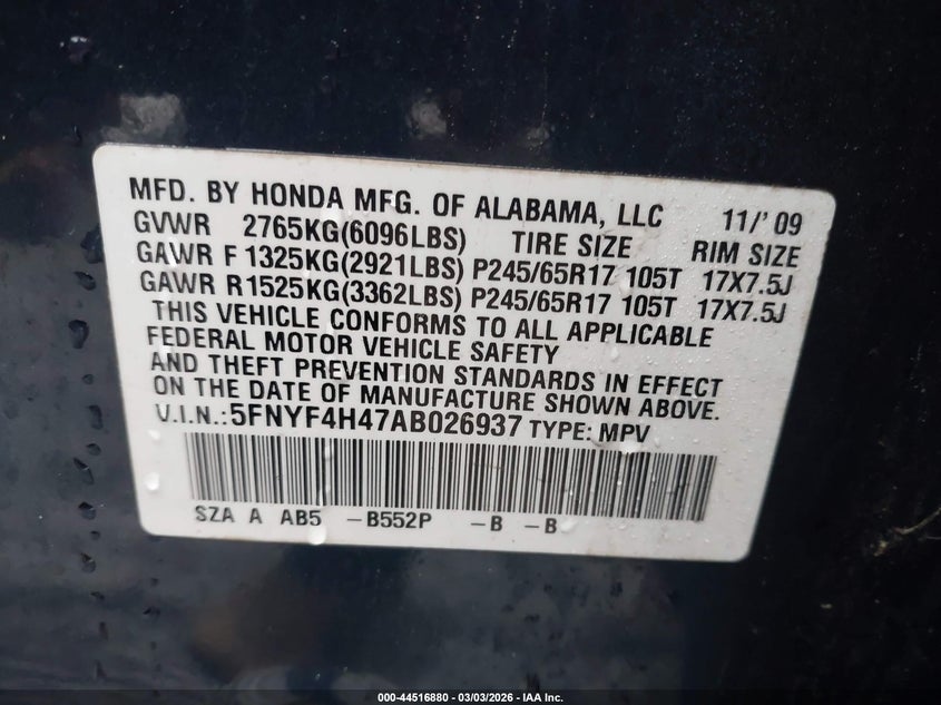 • 5FNYF4H47AB026937