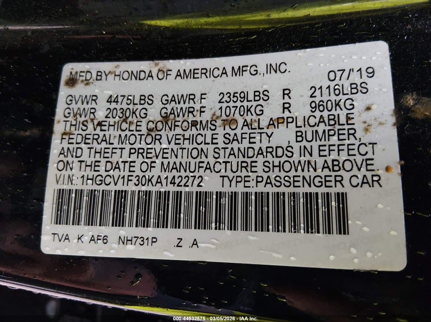 • 1HGCV1F30KA142272